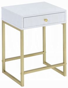 Bring the trending contemporary style into your home with this updated Coleen side table. This side table comes with a drawer providing you an additional space to storage. With featuring white top and brass base, this accent piece will be an elegant piece for any decor.Read More