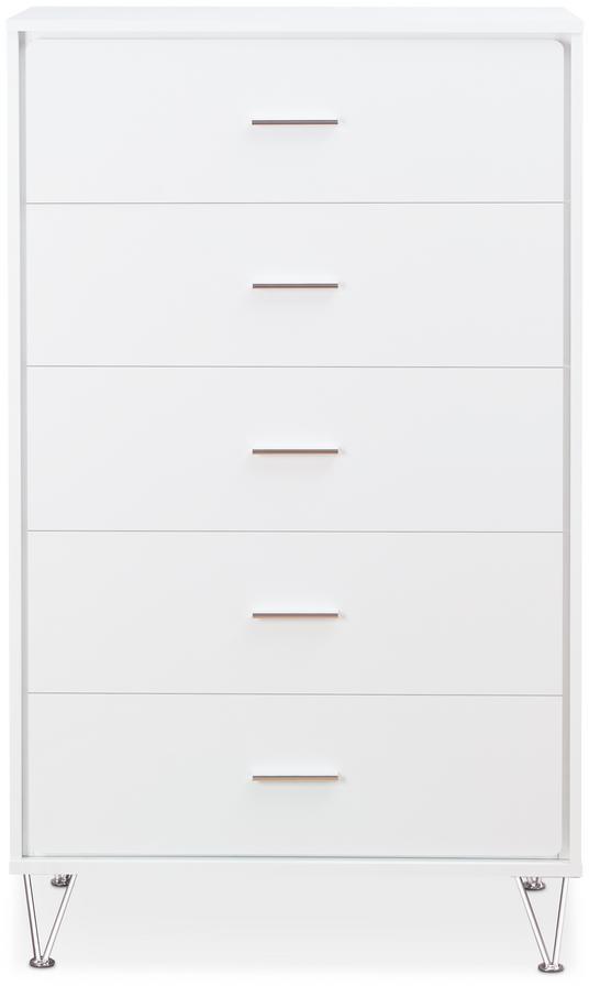 This beautiful Deoss chest of drawers boasts of contemporary style, five drawers with metal drawer handles. Crafted with multi shades of wood, the raw wood texture enhances this dressers sleek style and the drawers provide plenty of storage space for clothes and more.Read More