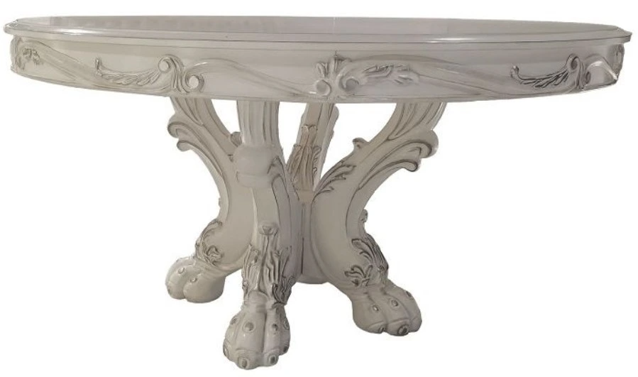 This stunning Dresden round dining table showcases a bone white finish that exudes elegance and sophistication. The table stands on a single pedestal that is adorned with scrolls. These decorative scrolls add a touch of artistry and elegance, elevating the overall aesthetic of the table.Read More