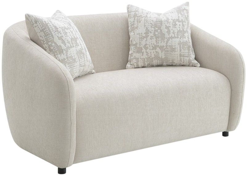 This Etienne loveseat combines modern elegance with comfort. Features include knock down legs, tight back and seat cushions, full foam seat construction, and a sturdy wooden inner frame. Accent pillows are included to enhance both style and coziness, making this loveseat an inviting addition to any living space.Read More