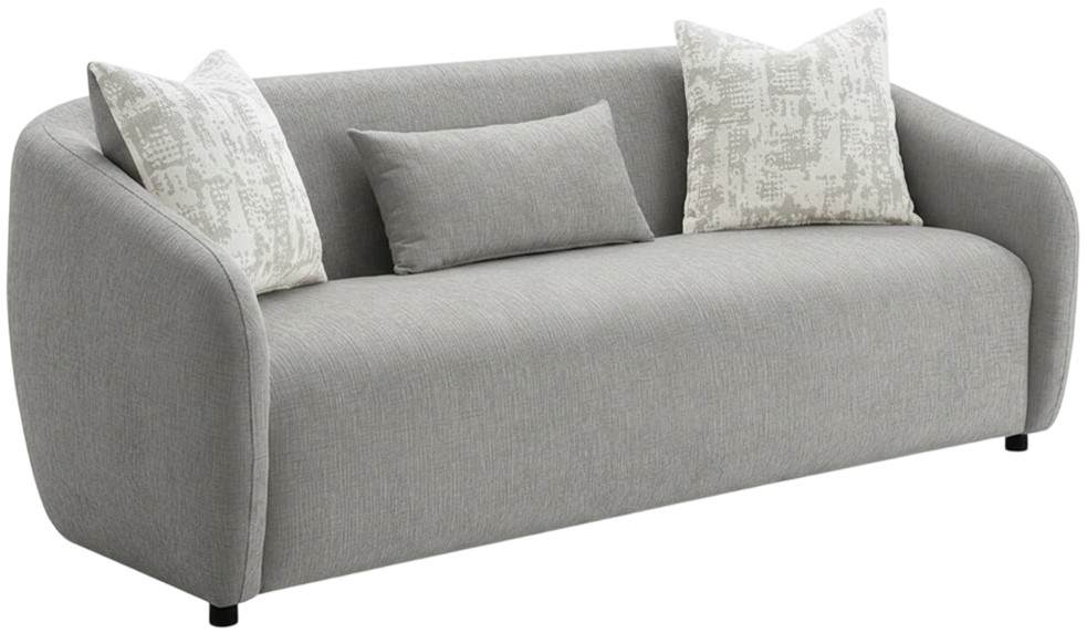 This Etienne sofa combines modern elegance with comfort. Features include knock down legs, tight back and seat cushions, full foam seat construction, and a sturdy wooden inner frame. Accent pillows are included to enhance both style and coziness, making this sofa an inviting addition to any living space.Read More