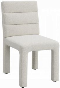 Hettie collection side chair enveloped in luxurious beige boucle, exudes timeless elegance and comfort. Its structured design and plush upholstery make it an ideal addition to any dining or living space. This chair not only provides a chic seating option but also enhances the aesthetic appeal of your home.Read More
