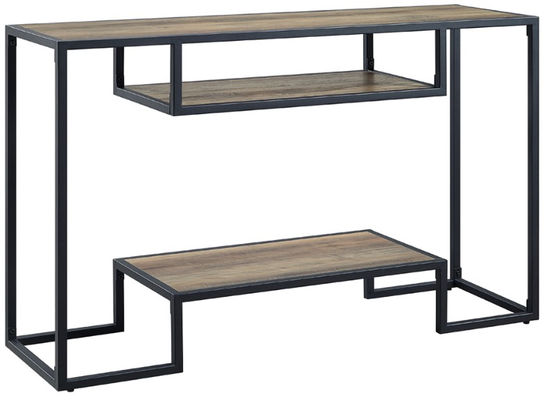 The Idella Sofa Table combines charm with practicality. Featuring a sturdy black metal frame and a rustic oak wooden top, this table offers two spacious storage shelves for added functionality. Perfect for entryways or living spaces, it delivers style with warm, natural accents.Read More