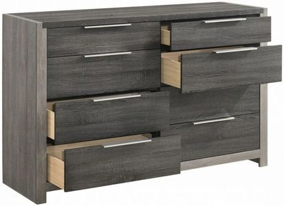 Enhance your bedroom with Jehoram dresser. Featuring a sleek gray finish and design, this dresser offers ample storage with its spacious drawers. Its elegant look and functional design make it a perfect addition to your bedroom, combining style and practicality for a sophisticated living space.Read More
