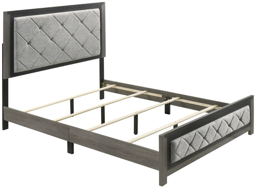 The Jehoram bed combines elegance with comfort, featuring a striking gray finish and upholstered panel headboard and footboard. Its sturdy construction and sleek design make it a standout centerpiece, offering both style and a restful retreat for any master bedroom.Read More