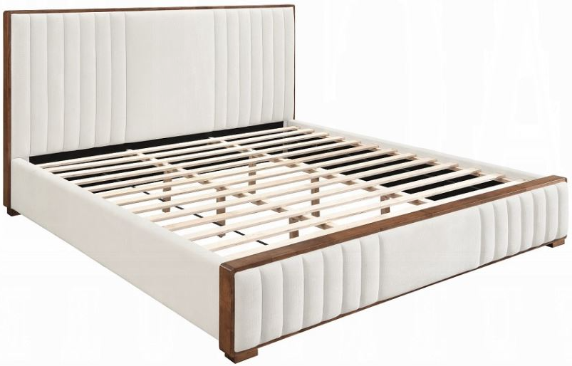 The perfect mixture of traditional and modern, this Kaleea bed is sure to satisfy any need. The lavish channel-tufted headboard and low-profile footboard are elegantly framed in a wooden border to match any decor. Your mattress will sit snuggly atop its included slat system.Read More