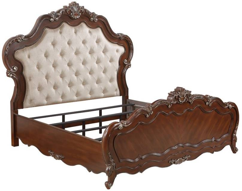 The Latisha bed is a stunning traditional timeless piece. It is designed with exquisite shell and scroll details that evoke a sense of classic elegance. Finished in rich antique oak with golden highlights, this bed features a padded button-tufted fabric headboard and scalloped edges.Read More