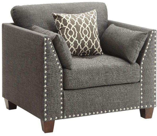 The Laurissa Chair in light charcoal linen is a sophisticated two-seater that combines comfort with modern elegance. It features buttonless tufting on the back and seat cushions, flared armrests with nailhead trim, and sturdy wooden block legs in an espresso finish.Read More