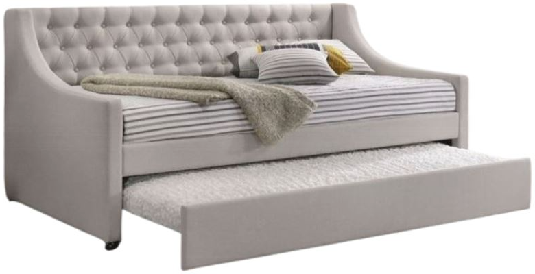 Give your guestroom, living room, or den a convenient and stylish update with the Lianna daybed. This bed's unique fog fabric has antique-inspired details like button tuft upholstery, and sloped armrest to create a charming and timeless look. A twin-sized trundle with casters for mobility offers room for an overnight guest.Read More