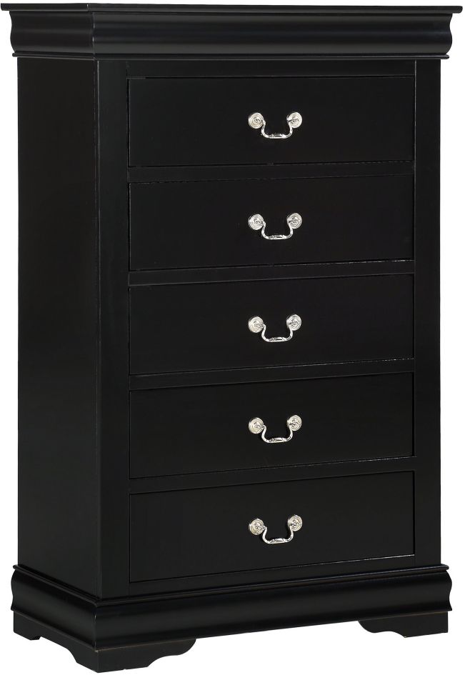 The collection of Louis Philippe III bedrooms includes a sleigh bed, nightstand, mirror and dresser to give a complete and finished look to your room. With its sleek black finish, the collection will complement your sophisticated decor. The four-piece bedroom set consists of select veneers and antique brass hardware features.