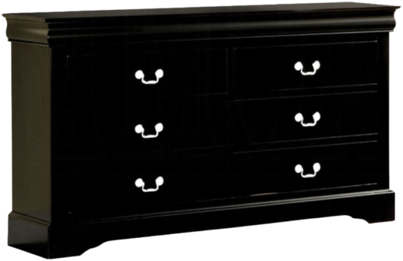 This Louis Philippe III dresser comes in black, cherry, white, and antique gray finish. Features six drawers that provide ample space to store your clothing, bedding and linens. All drawers have brushed nicked metal hardware and center metal glides.Read More