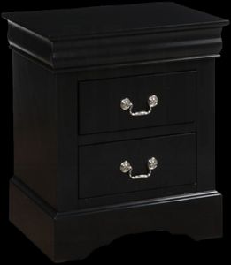 The Louis Philippe III nightstand comes in black, cherry, white, and antique gray finish. It has two drawers with center metal glide and brushed nickel metal handle. Offers you plentiful storage with spacious drawers.Read More