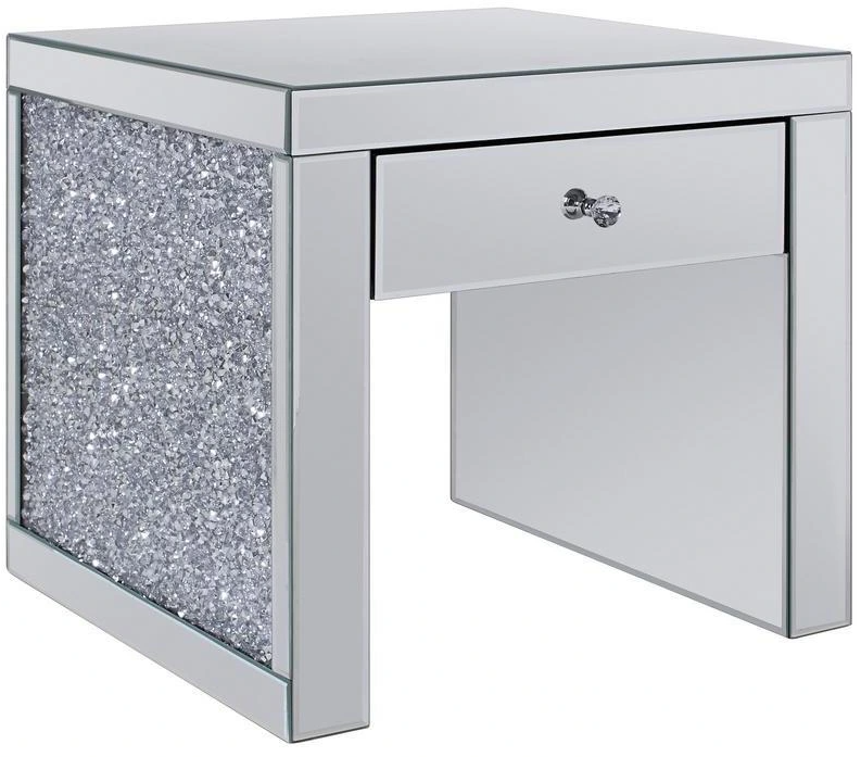 The Noralie End Table will give any room a touch of glamour. This contemporary end table is fully mirrored with a stunning mirror top and a faux diamonds inlay on each leg of its sled base. Use this unique piece as the perfect accent for any room Decor.Read More