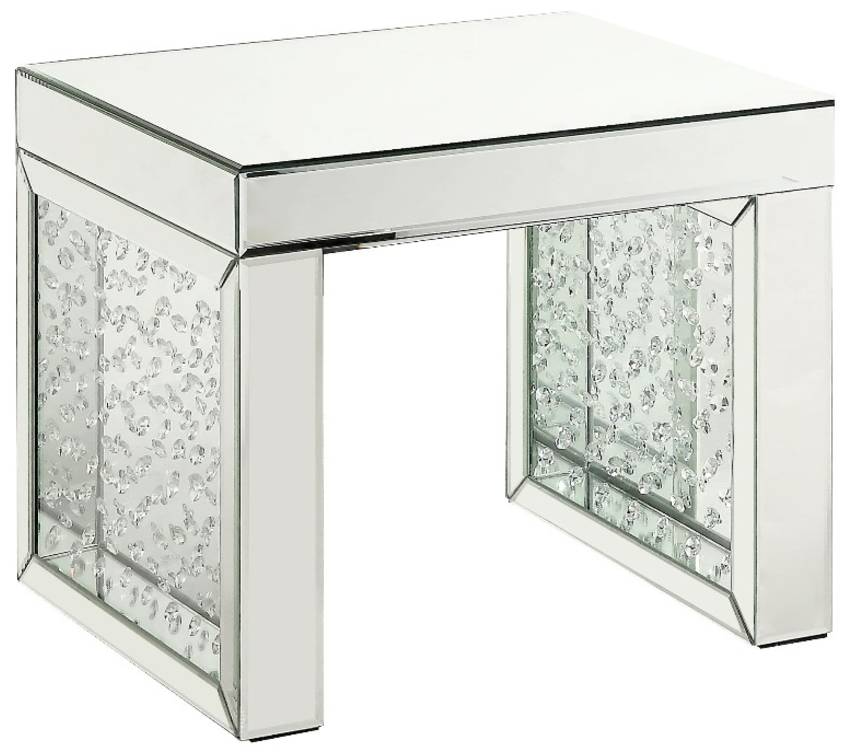 Go full glam with this Nysa Accent Table. The brilliant mirrored tabletop and glistening faux crystals inlay will reflect light and make any room appear larger. The Nysa Accent Table is truly a statement piece for any space. Use in any room to enhance your decor.Read More