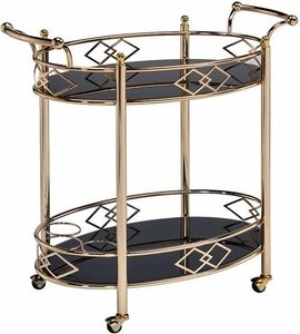 Add a bold statement to your kitchen or dining room with this Ottesen serving cart. With metal in a gold finish, and black tempered glass on both shelves. The caster wheels allow you to move from room to room effortlessly. Along with its excellent functionality, its oval shape design is unique and trendy.Read More