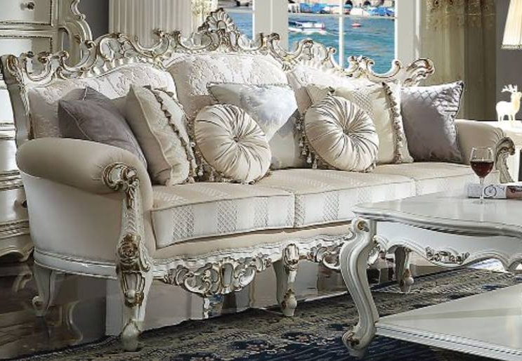 Oversized Scrolled Trim: Antique pearl with gold brush (backrest, front armrest and base)