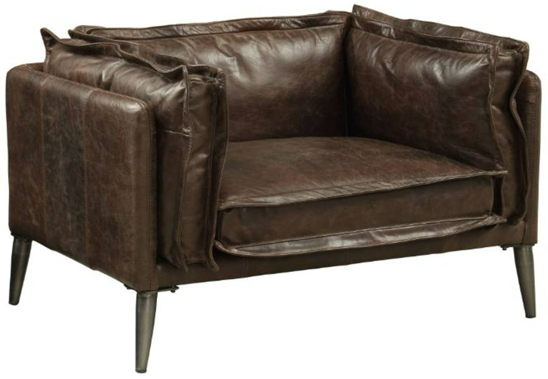 The ACME Furniture Porchester Distressed Chocolate Leather Chair exudes rustic charm with its aged, chocolate-brown leather upholstery. Its plush cushioning and sturdy wood frame ensure both timeless style and cozy comfort for compact spaces.Read More