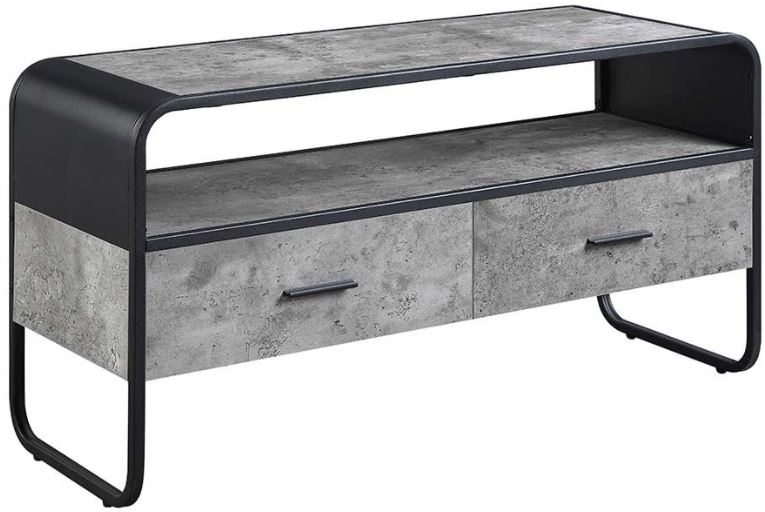 For a low-profile yet stylish addition to your living room, look no further than this modern Raziela TV stand. This modern TV stand accomplishes a chic modern design with its smooth top and sleek faux concrete and black frame. This TV stand has luxurious faux concrete shelving for an on-trend look without the weight.Read More