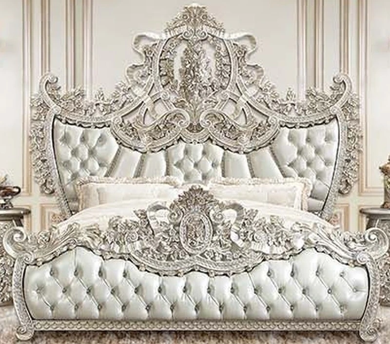 A luxurious antique silver finish with hand-brushed gold accents makes up the Sandoval bed. It is surrounded by fine Rococo scrolls and floral ornament crowns with stylized ribbons. Fine finishing touches, such as crystal-like buttons add some gleam to the piece. The PU upholstery gives this bed a fresh contemporary touch.Read More