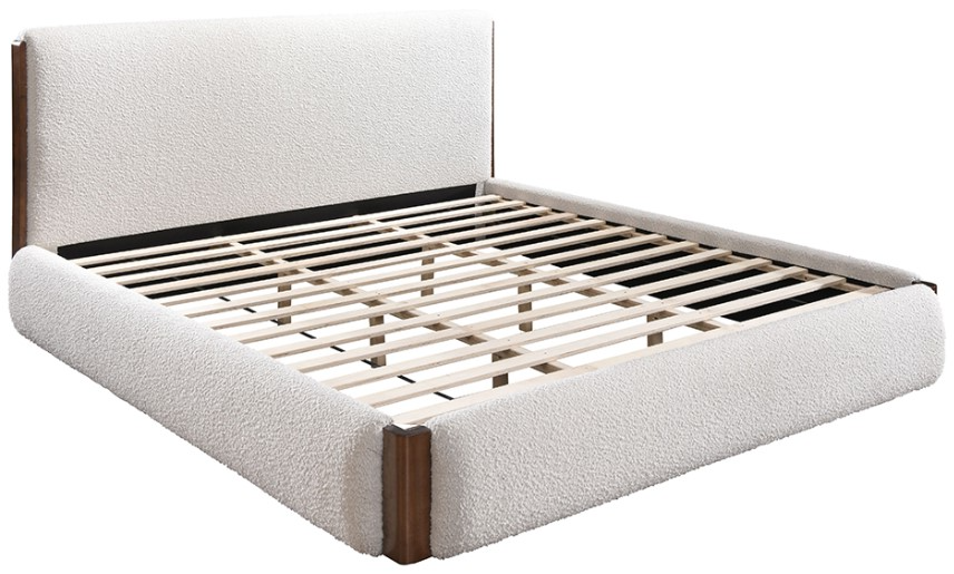 The Sandro bed's presence in the bedroom will never be missed with its unique, snuggly-looking white boucle upholstery. It's walnut finish accent framing and textural white material offer a look that’s equal parts modern and luxurious, with a soft, natural charm all its own.Read More