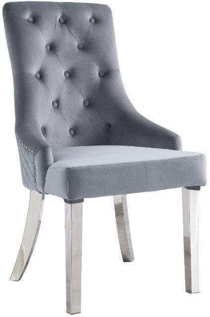 Contemporary flair graces classic silhouettes to create a timeless design that will blend with any home style. This Parson-style side chair has an upholstered height back adorned by a sparkling nail-head border and a silver pull-ring, with button-tufted details and a diamond grid pattern for a luxurious comfortable look.Read More