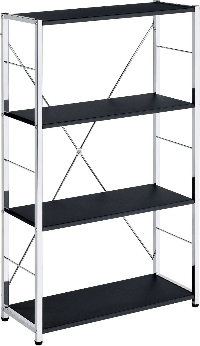 The Tennos Black/Chrome Bookshelf is a modern and elegant piece designed to complement contemporary interiors. It features a sturdy chrome-finished metal frame and white shelves with a durable PVC veneer.Read More