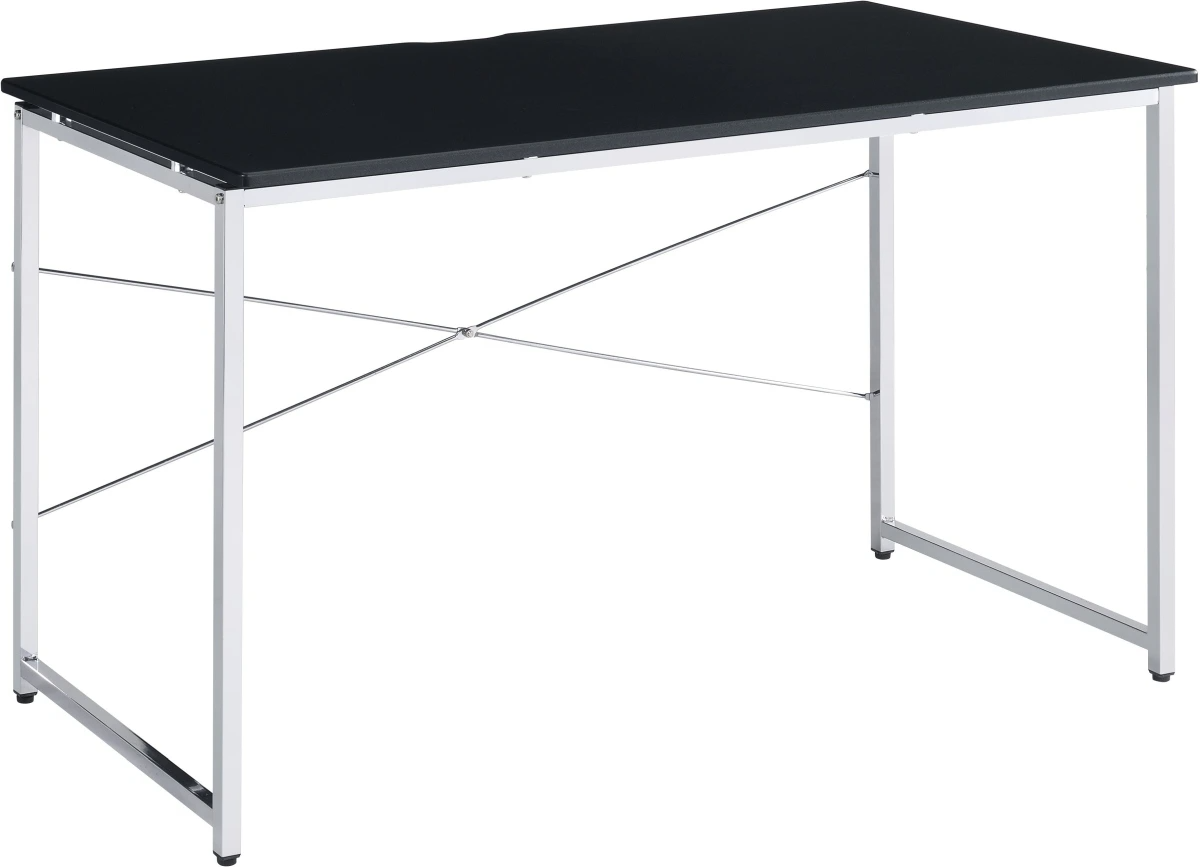 The Tennos Black/Chrome Writing Desk is a sleek and modern piece designed to elevate any workspace. It features a black engineered wood top with a thickness of 15mm and is supported by a chrome metal frame with a contemporary X-shaped crossbar for added stability and style.Read More