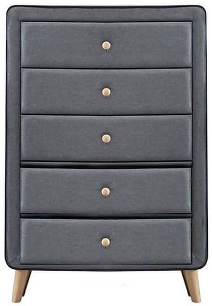 Beautifully crafted and elegantly finished, our Valda chest has a soft, plush appearance. Light gray fabric with black welt trim shows your unique taste & makes your bedroom looks more than better. This will be the one that you can't miss.