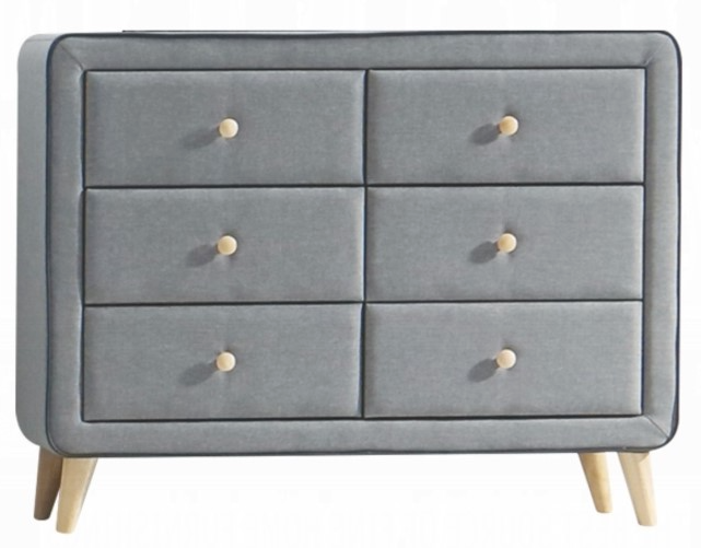 Beautifully crafted and elegantly finished, our Valda dresser has a soft, plush appearance. Light gray fabric with black welt trim shows your unique taste and makes your bedroom looks more than better. This will be the one that you can't miss.Read More