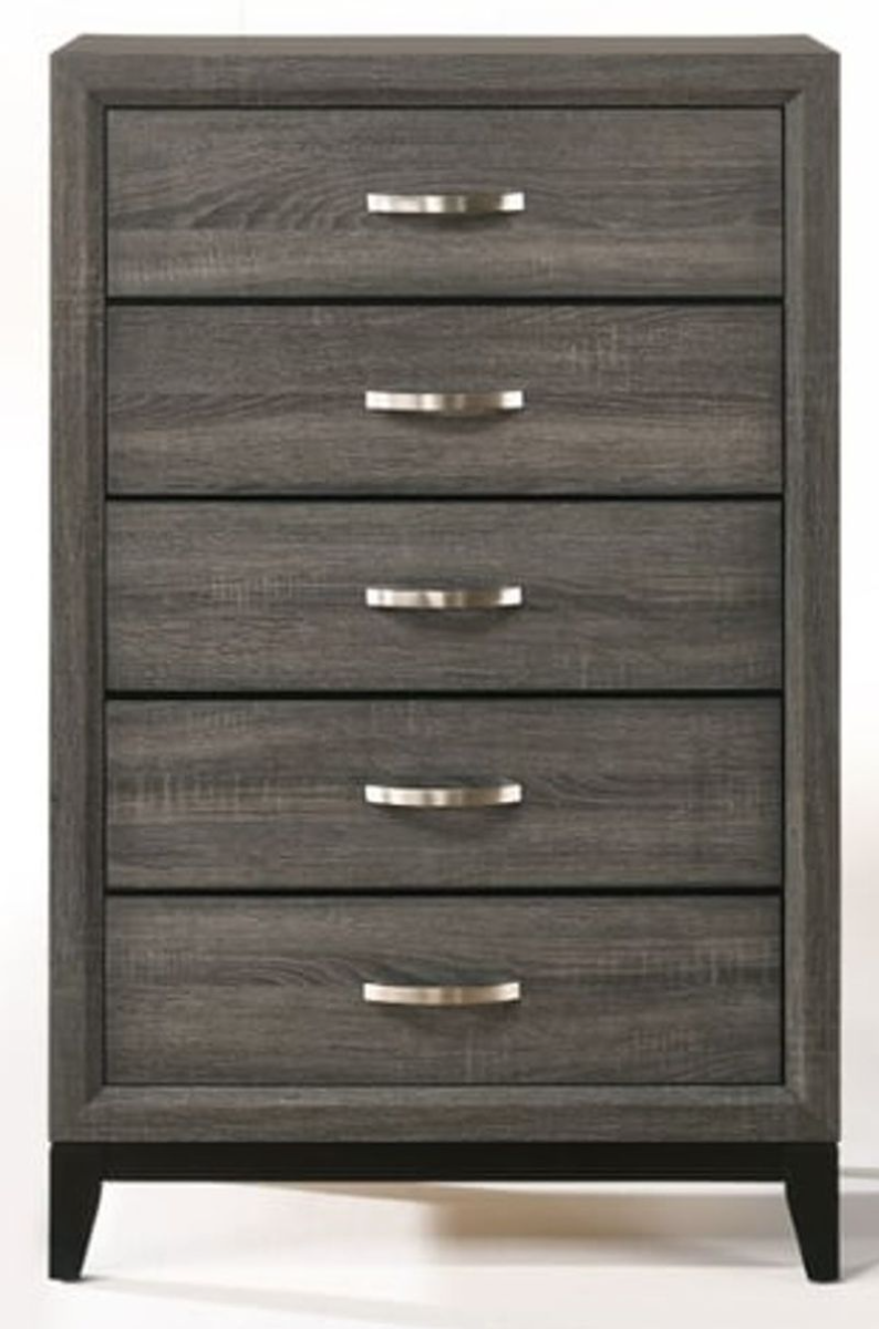 With weathered gray finish, the Valdemar collection combine with the idea of brick elements to bring loft style into your bedroom. The horizontal line design throughout the collection will bring you a relaxing but not monotonous environment in your bedroom. It has plentiful space to store your folded clothing in dresser and chest.Read More