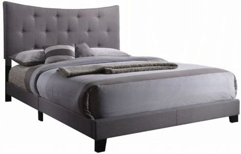 The Venecha platform bed is stunning with its soft concave arch in the headboard that also features button tufting. The side rails and platform footboard are also wrapped in the gray and supported by wood feet and headboard posts. This bed would work well with any Decor as a new addition to a bedroom.Read More