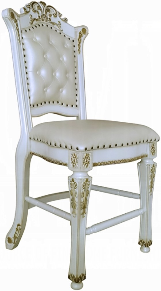 The Vendome counter height dining chairs look like they are right out of a Regency photograph. The chairs are in an antique pearl finish with hand-painted golden paint. The gold paint will help to accentuate the delicate fine details.Read More