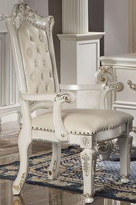 The Vendome executive office chair was inspired by old European design. This desk features highly decorative scrollwork with an antique gold hand-brushed finish. The piece is crafted of specialty-selected woods with a pearl white finish. Nailhead trims adorn the PU upholstered backrest and padded seat. The button tufting ties in all the design details.Read More