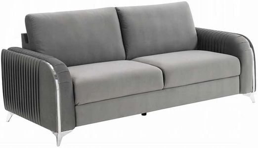 Make a bold statement with the Wenona blue velvet sofa. The blue color of the velvet upholstery is a classic color that will provide a fun pop of color in any home. This sofa is highlighted with polished chrome trim accents along the armrests and legs to match.Read More