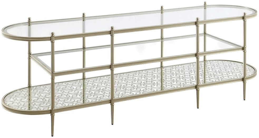 The Zaba TV stand features a sleek glass top paired with a refined champagne base for elegance. Designed with ample storage and surface space, it keeps media essentials organized while enhancing any living area. Durable and stylish, this stand combines functionality with contemporary sophistication for your home entertainment setup.Read More
