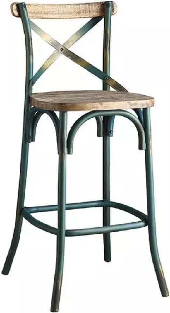 The Zaire collection chairs offer vintage-style bar chairs. It features reclaimed wood and metal looks, a simple "X" style backrest, a wooden seat, slightly flared four-legged base with footrest supports. Available in antique red, antique turquoise, antique sky, and antique copper.Read More