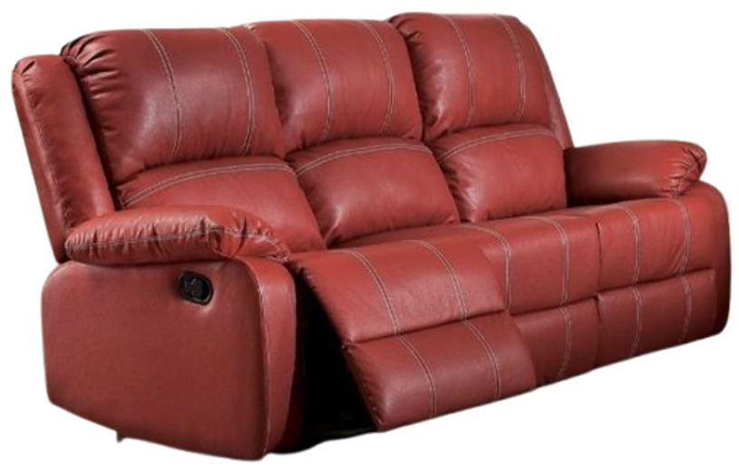 The ACME Furniture Zuriel Red Manual Reclining Sofa adds bold style and exceptional comfort to any living space. Upholstered in vibrant red faux leather, it features plush cushioning and a smooth manual reclining mechanism for relaxation. Its sturdy construction and eye-catching design make it a standout piece for your home.Read More