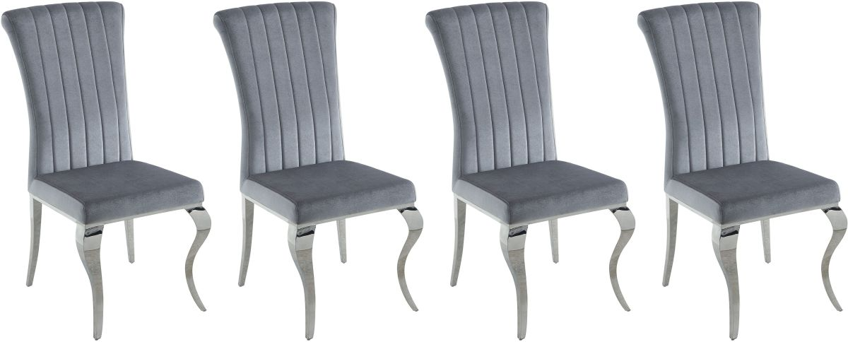 Cater to every occasion with the captivating allure of the Carone collection. The stunning, chrome-tone cabriole legs and clean lines satisfy your inner silver-screen star and make each meal a luxurious experience. Create the enchanting gathering place of your dreams with this ritzy CoasterEssence collection.