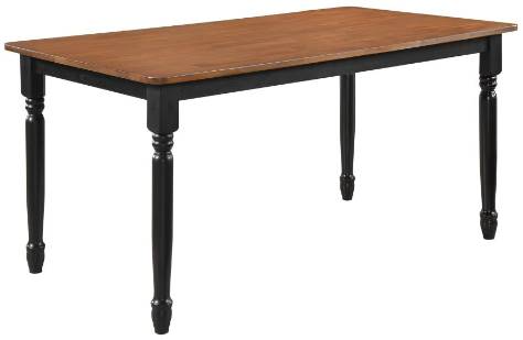 The table features a walnut finish tabletop that's warm and inviting, with a black finish base that adds a touch of drama. Turned style legs add an artisan inspired touch, perfect for refined flair in a casual cottage or farmhouse dining room. The table is expertly crafted with Asian hardwoods for exceptional quality and durability.