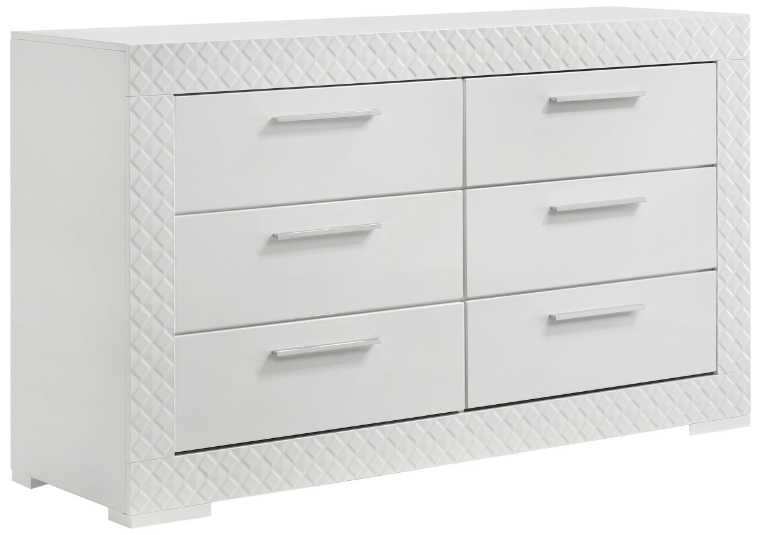 Elevate your bedroom decor with this stunning dresser, designed for both beauty and function. The high gloss finish enhances the contemporary Italian style, while the 3-dimensional diamond tile emboss adds a touch of sophistication. Six spacious drawers offer ample storage for clothing and accessories.Read More