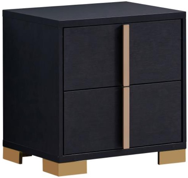 A bold look leans exotic and alluring to transform your master or guest bedroom into an inviting venue. Modern design details produce a chic nightstand with an Art Deco vibe and tons of elegance. Made of wood products, this two-drawer nightstand features a versatile finish with accenting from gold finish metal.Read More