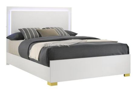 Enjoy the ethereal ambiance created by energy-efficient lighting framing its tall headboard, easily controlled through headboard-mounted touch buttons