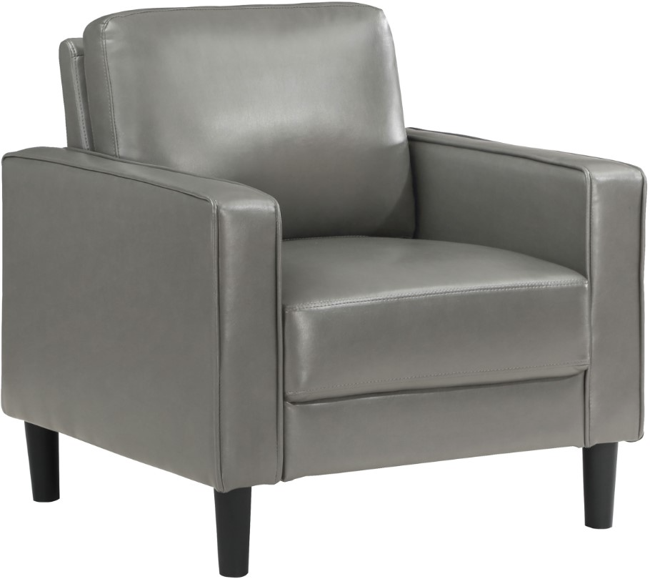 From your stylish home to a professional setting, this modern armchair is a chic choice. It features a structured silhouette with a compact footprint and straight track arms. Faux leather upholstery is smooth and sleek, offering a refined touch that can be styled for sophistication or relaxation.Read More