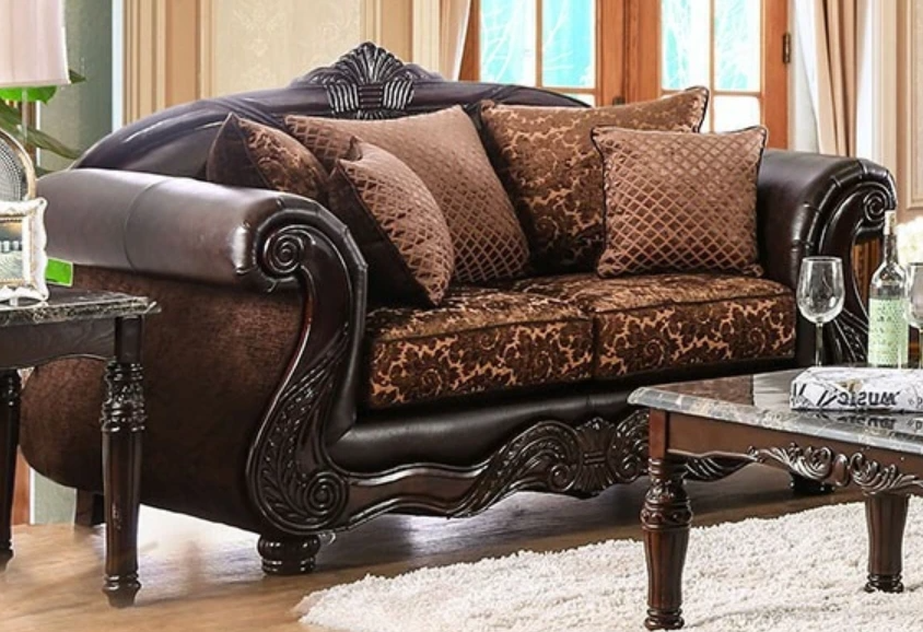 Visitors will wonder if they wandered into a palace when they enter and find this ornate piece awaiting them. An elaborate wooden trim decorates the base and front of the rolled armrests and continues the frame to accentuate the top of the backrest.Read More