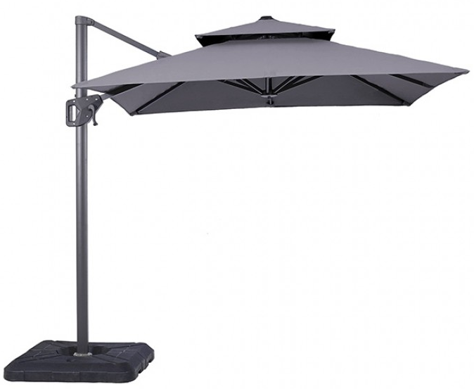 The Furniture of America® Fida Gray Aluminum/Polyester Square Outdoor Umbrella with Base features a stylish beige canopy made from durable polyester, supported by a strong aluminum frame. Its square design and included base provide stability, offering excellent sun protection for outdoor spaces.Read More