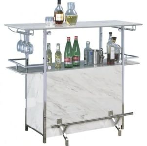 It's exquisite and petite, an elegant bar table to have stand at the ready. The natural-looking faux marble appearance makes it an attractive fit for any room. Convenience is fulfilled with this functional retro piece with its lively appearance.Read More