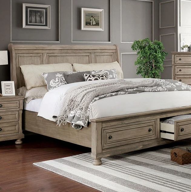 Bring tranquility home with this complete bedroom set from the Wells Collection. Mattress ready, the bed features a sleigh-back, paneled headboard and two large footboard storage drawers. Hidden night stand and dresser drawers, and a USB charger in the night stand.Read More