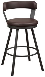 Perfectly styled for your casual dining space is the Appert Collection. This 29-inch pub height chair offering features a dark gray metal base that serves to support the brown faux leather round swivel seat.Read More