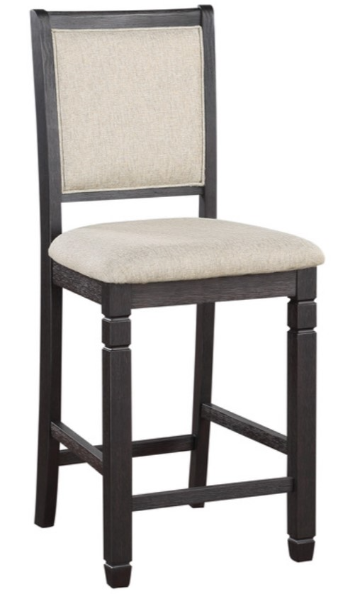 The transitional style of the Asher collection creates a versatile platform to inspire your casual dining room décor. The antique black finish over acacia veneer serves to highlight the wood-framed counter height chair's grain while allowing for maximum versatility in decorative accenting with the beige fabric seats providing complementing contrast.Read More