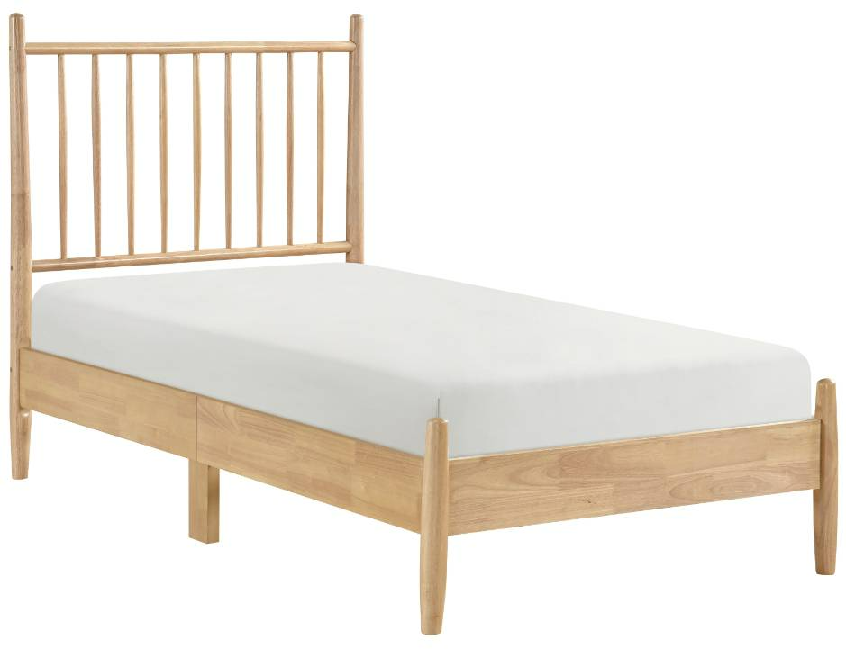 The Brickell natural twin platform bed brings timeless appeal with its natural wood finish and clean lines. A slatted headboard adds subtle detail, while the low-profile platform design offers sturdy mattress support without a box spring. Crafted for durability and style, this bed enhances any bedroom with simple elegance.Read More